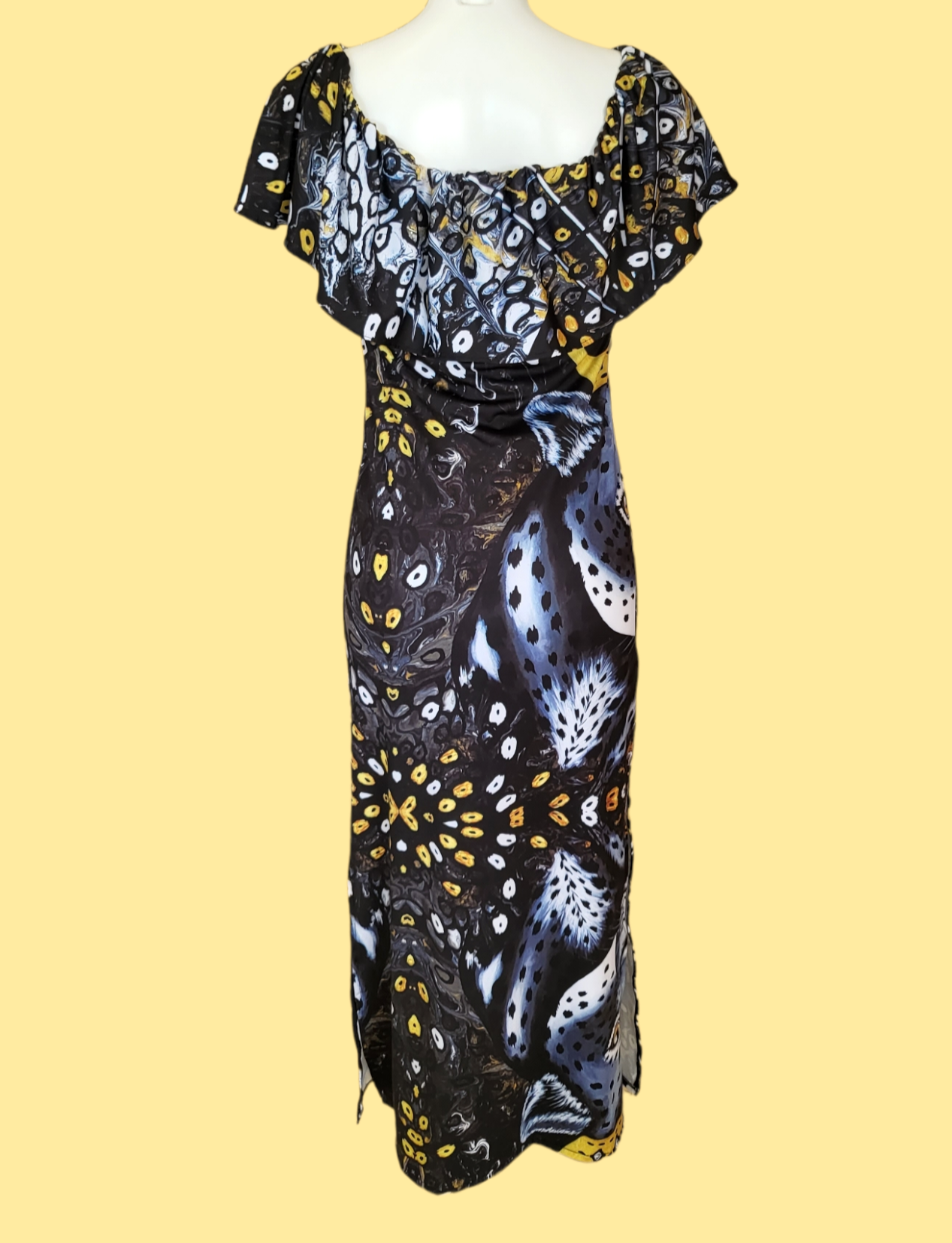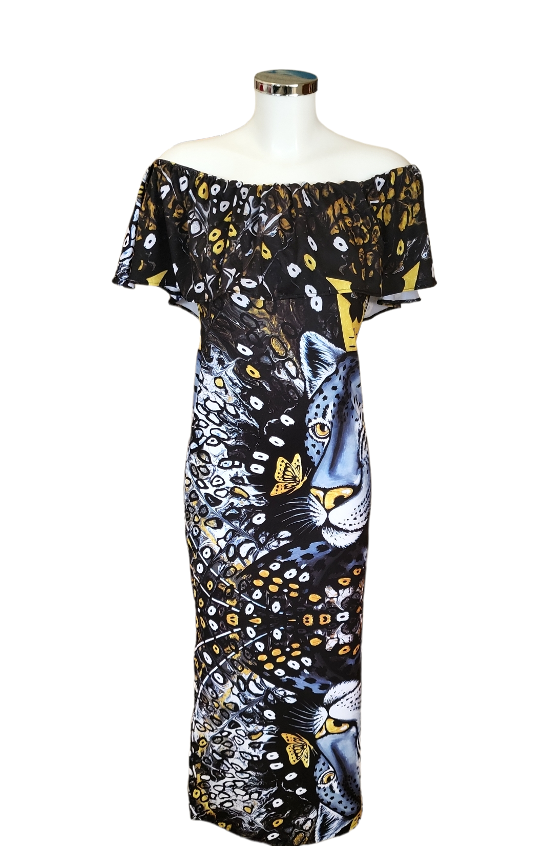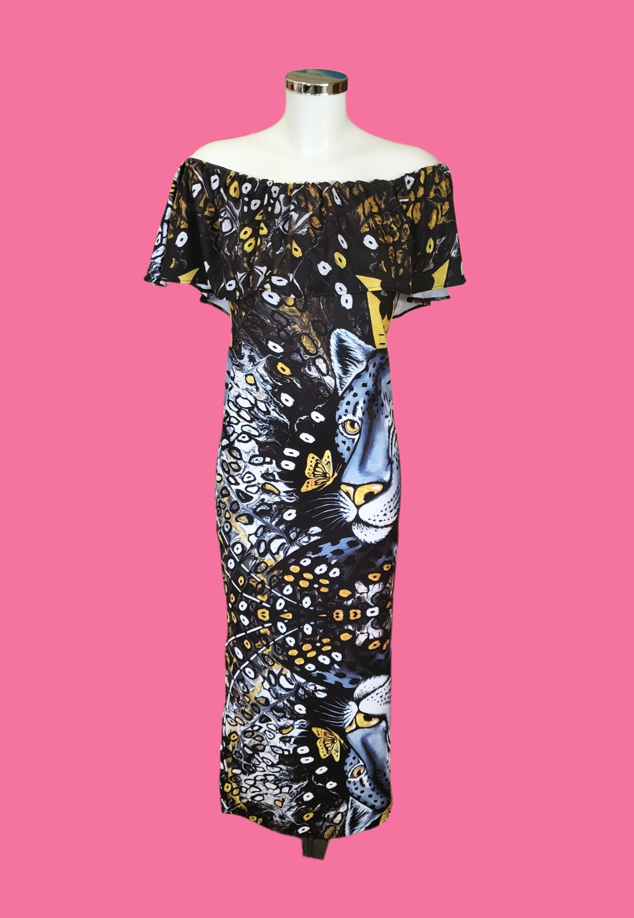 Auksinio drugelio ir leopardo suknelė su raukiniais – elegantiška ir moteriška apranga, tinkanti tiek kasdienai, tiek šventėms. Lengvas audinys ir išskirtinis dizainas pabrėžia figūrą ir suteikia pasitikėjimo.