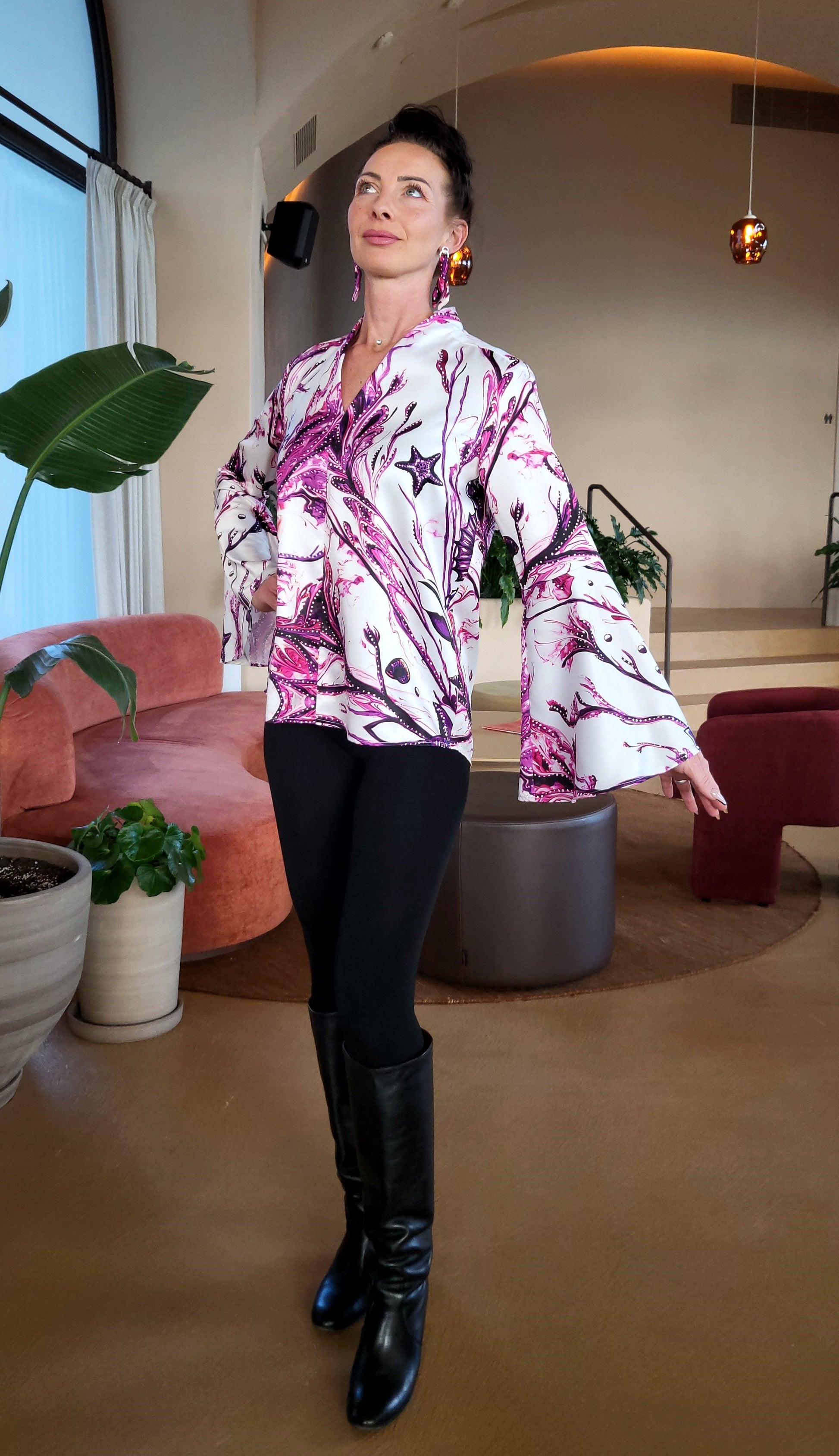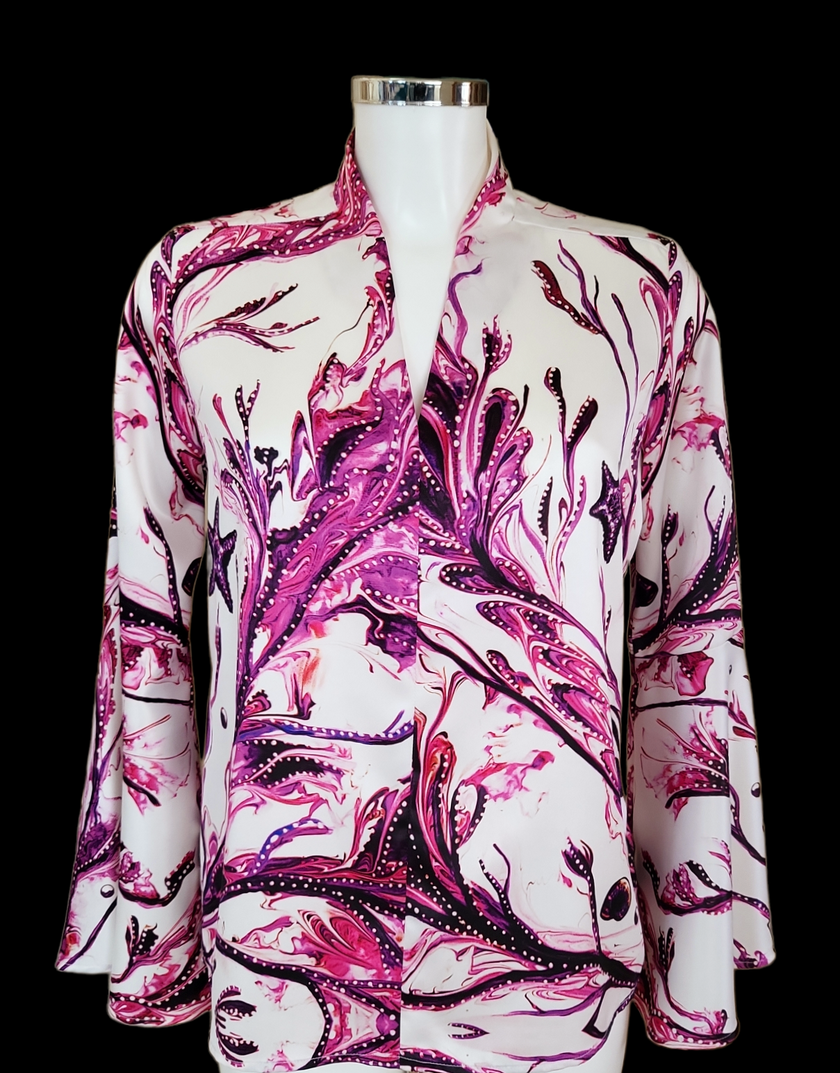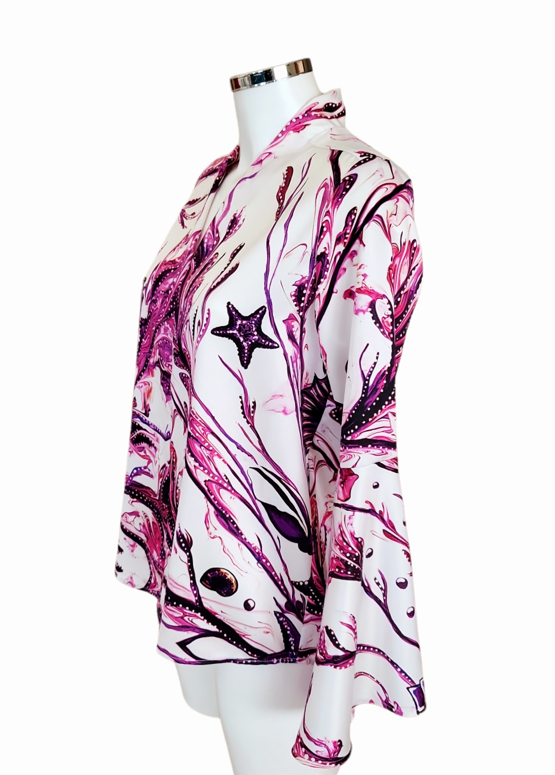 Violetinio jūrų arkliuko palaidinė ilgomis rankovėmis – universali viršutinė dalis, tinkanti tiek biurui, tiek laisvalaikiui. Stilingas dizainas ir patogus kirpimas leis jaustis užtikrintai kiekvieną dieną.